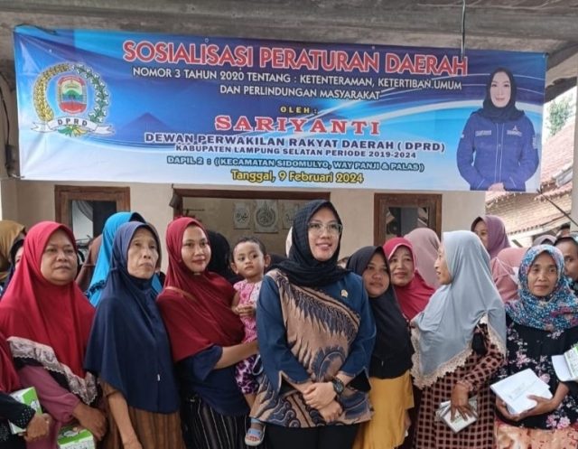 Lampung Selatan | Newsanalis.com- Guna menciptakan situasi aman, nyaman dan kondusif, dalam rangka menyambut Pemilihan Umum (Pemilu) pada 14 Februari 2024 mendatang, anggota komisi IV DPRD Kabupaten Lampung Selatan (Lamsel) Sariyanti, melakukan Sosialisasi Peraturan Daerah (Sosperda) Nomor 3 tahun 2020.