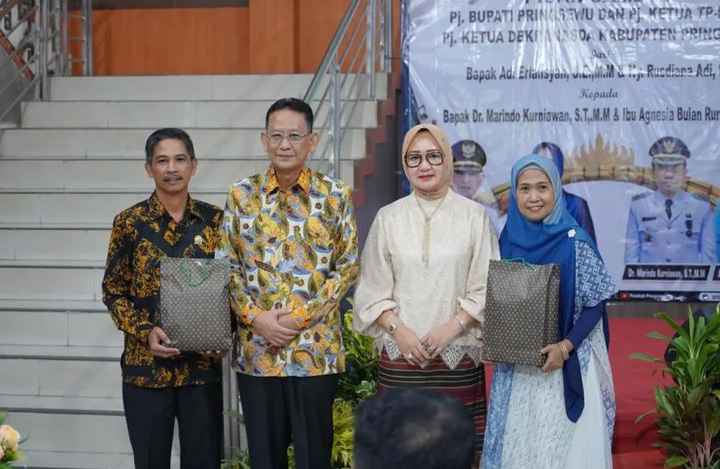 Pisah Sambut Pj.Bupati dan Pj.Ketua TP-PKK Pringsewu 2022-2024 Adi Erlansyah dan Rusdiana Adi Erlansyah dengan Pj.Bupati dan Pj. Ketua TP-PKK Pringsewu yang baru, Marindo Kurniawan dan Agnesia Marindo berlangsung penuh haru, digelar di Lobi Utama Kantor Bupati Pringsewu, Senin (4/3/2024).