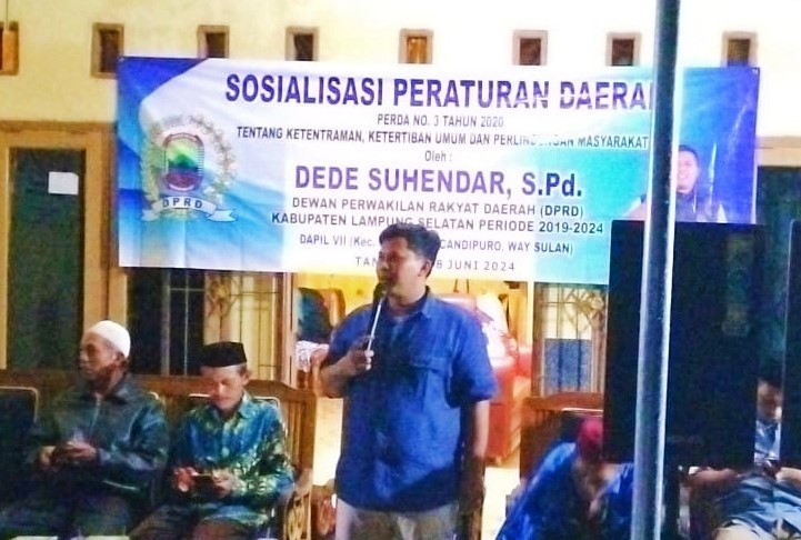 Hal itu dikatakan Dede Suhendar, dalam kegiatan dialog Sosialisasi Peraturan Daerah (Sosperda) Nomor 3 Tahun 2020 tentang Ketentraman, Ketertiban Umum dan Perlindungan Masyarakat, yang dipusatkan di Desa Sukamaju, Kecamatan Way Sulan, Sabtu (8/6/2024).