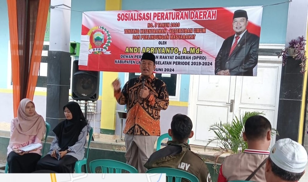 Lampung Selatan | Newsanalis.com – Sekretaris komisi II Dewan Perwakilan Rakyat Daerah (DPRD) Kabupaten Lampung Selatan Andi Apriyanto AMd., melaksanakan Sosialisasi Peraturan Daerah (Sosperda) Nomor 3 Tahun 2020 di Kelurahan Way Urang, Kecamatan Kalianda, Sabtu (8/6/2024).