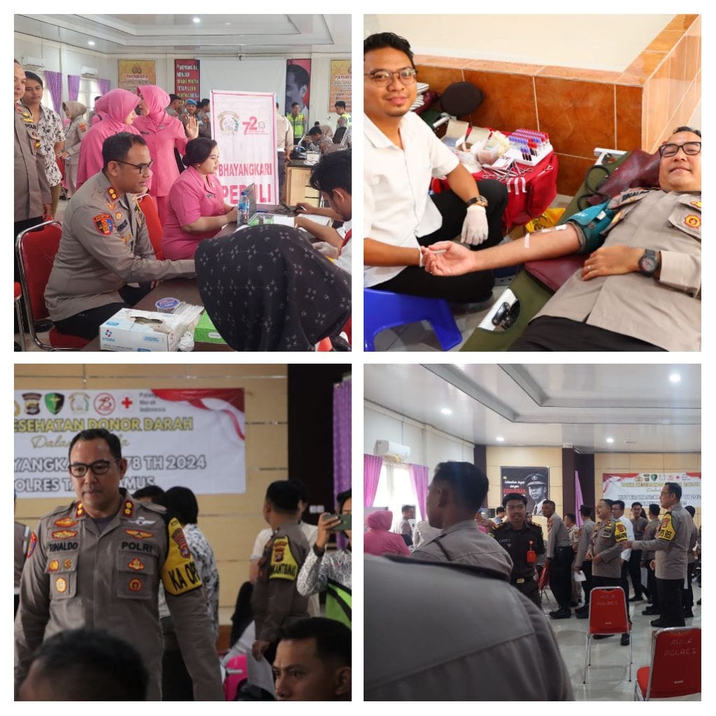 Tanggamus —–News analis. Com Sambut dan meriahkan Hari Bhayangkara ke 78 Tahun 2024 Polres Tanggamus menggelar kegiatan bakti kesehatan donor darah di Aula Parammasatwika Mapolres Tanggamus Kamis, 20 Juni 2024.