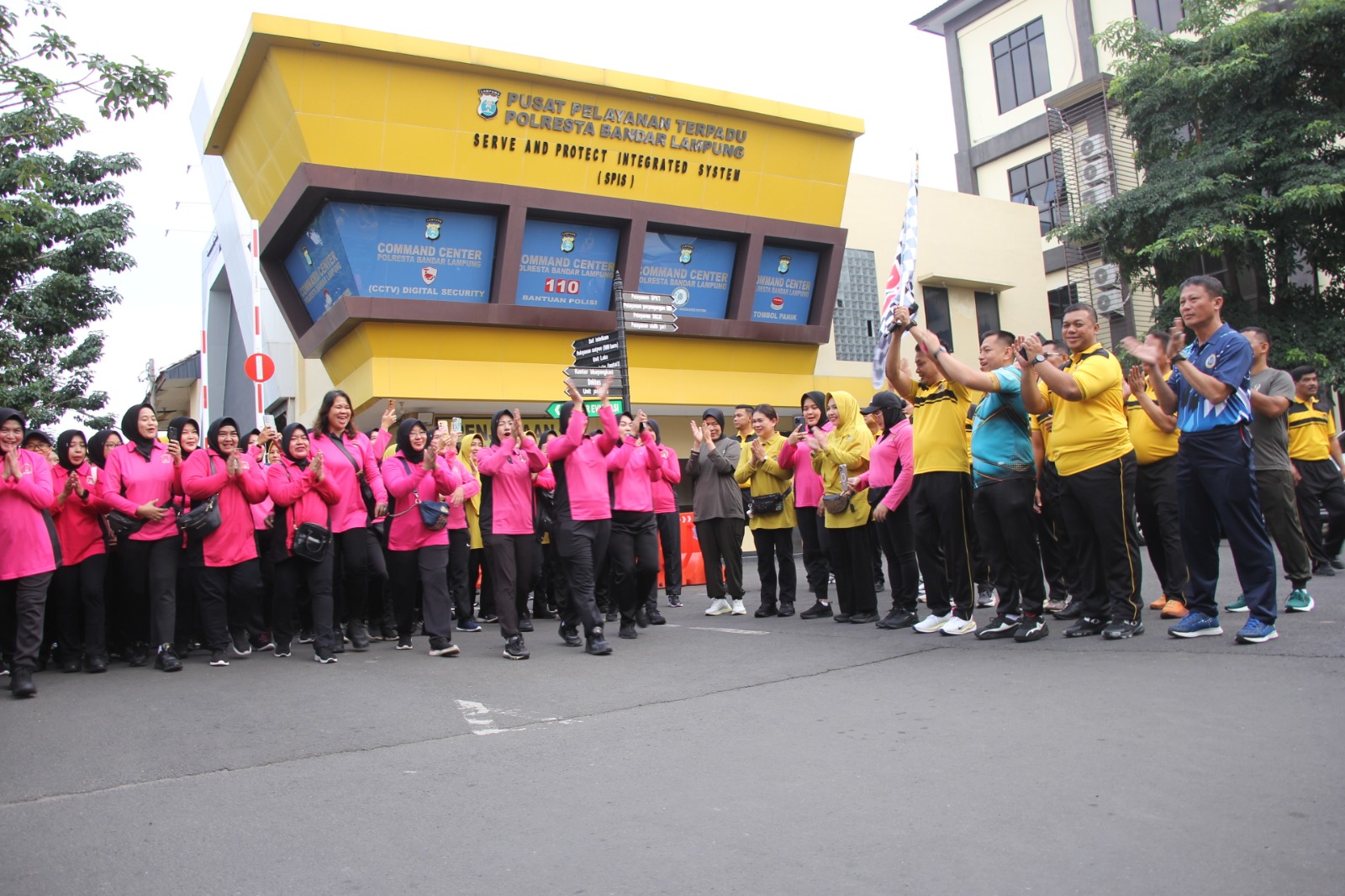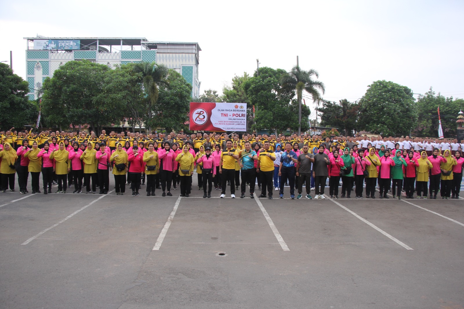 Kompak, TNI – Polri di Bandar Lampung Olah Raga Bersama, Meriahkan Hari Bhayangkara Ke-78