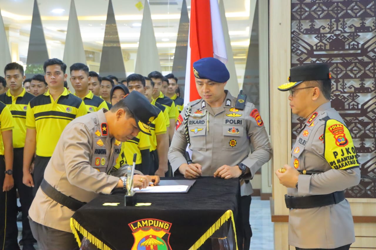 Dalam upacara tersebut, Kapolda Lampung Irjen Pol Helmy Santika bertindak sebagai Inspektur Upacara.