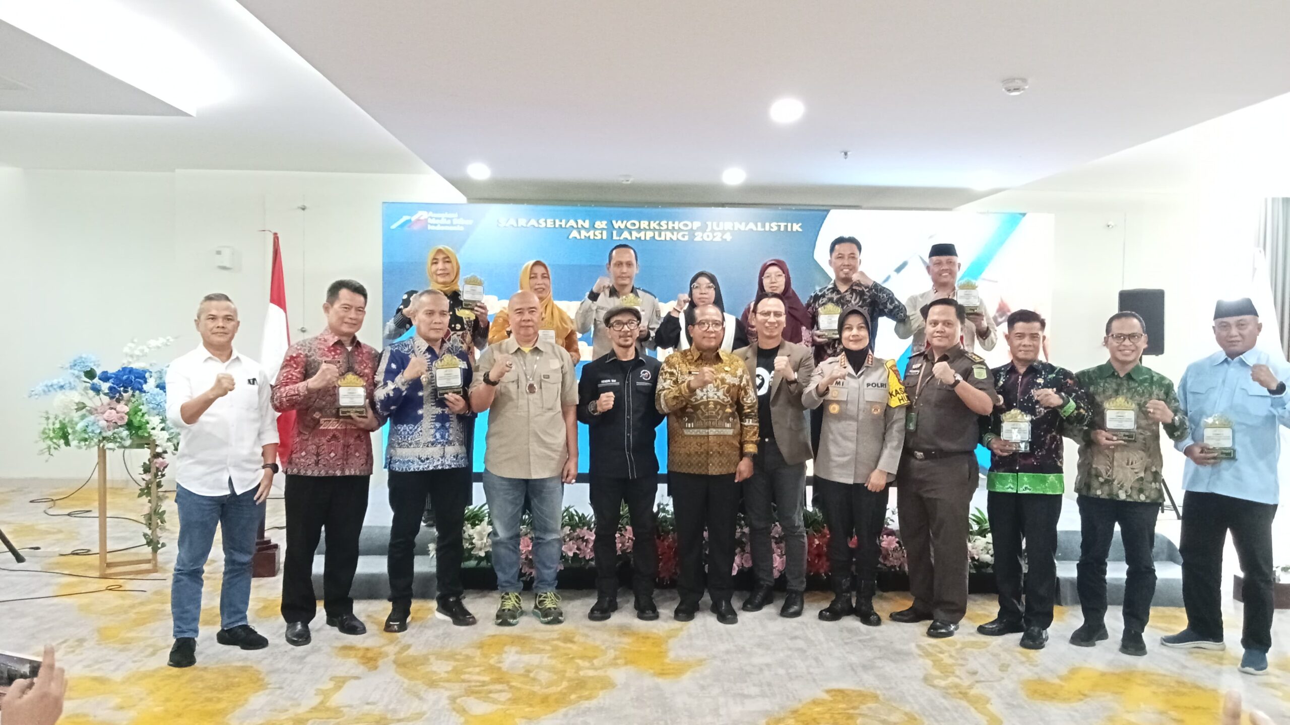 Pada kegiatan tersebut AMSI Lampung juga memberikan penghargaan kepada pemenang lomba Anugerah Website Terbaik Piala Gubernur Lampung 2024.