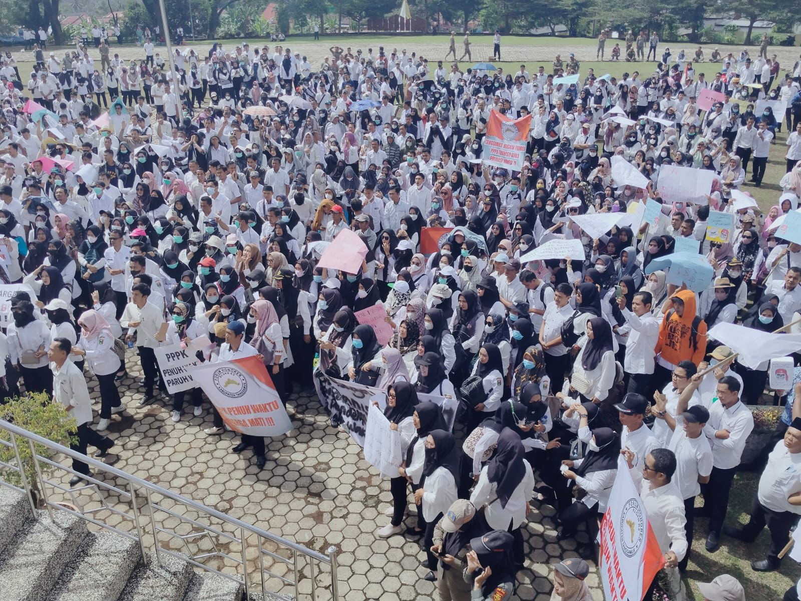 Ribuan Pegawai Honorer Berstatus R 2 danR 3 ,Menggelar Aksi Damai di Depan Kantor Bupati