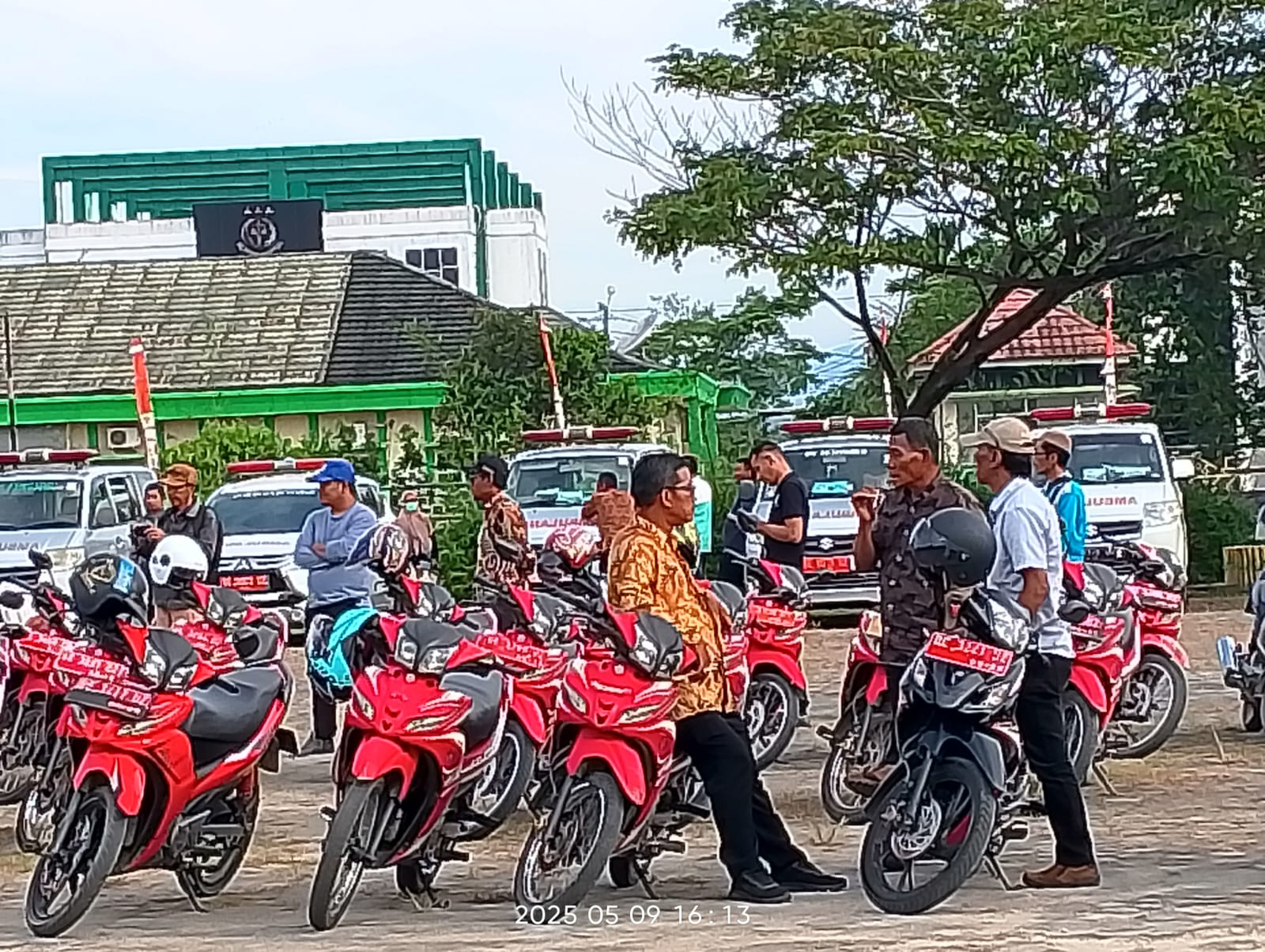 Pringsewu | Newsanalis.com-Hari ketiga (terakhir-red) apel kendaraan dinas (Randis) baik roda dua dan roda empat di lapangan Pemkab Pringsewu, puluhan tenaga kesehatan (Nakes) dan kepala pekon (Kakon) terlihat sedang menunggu giliran kendaraannya untuk di cek, Jumat (09/05/1025).