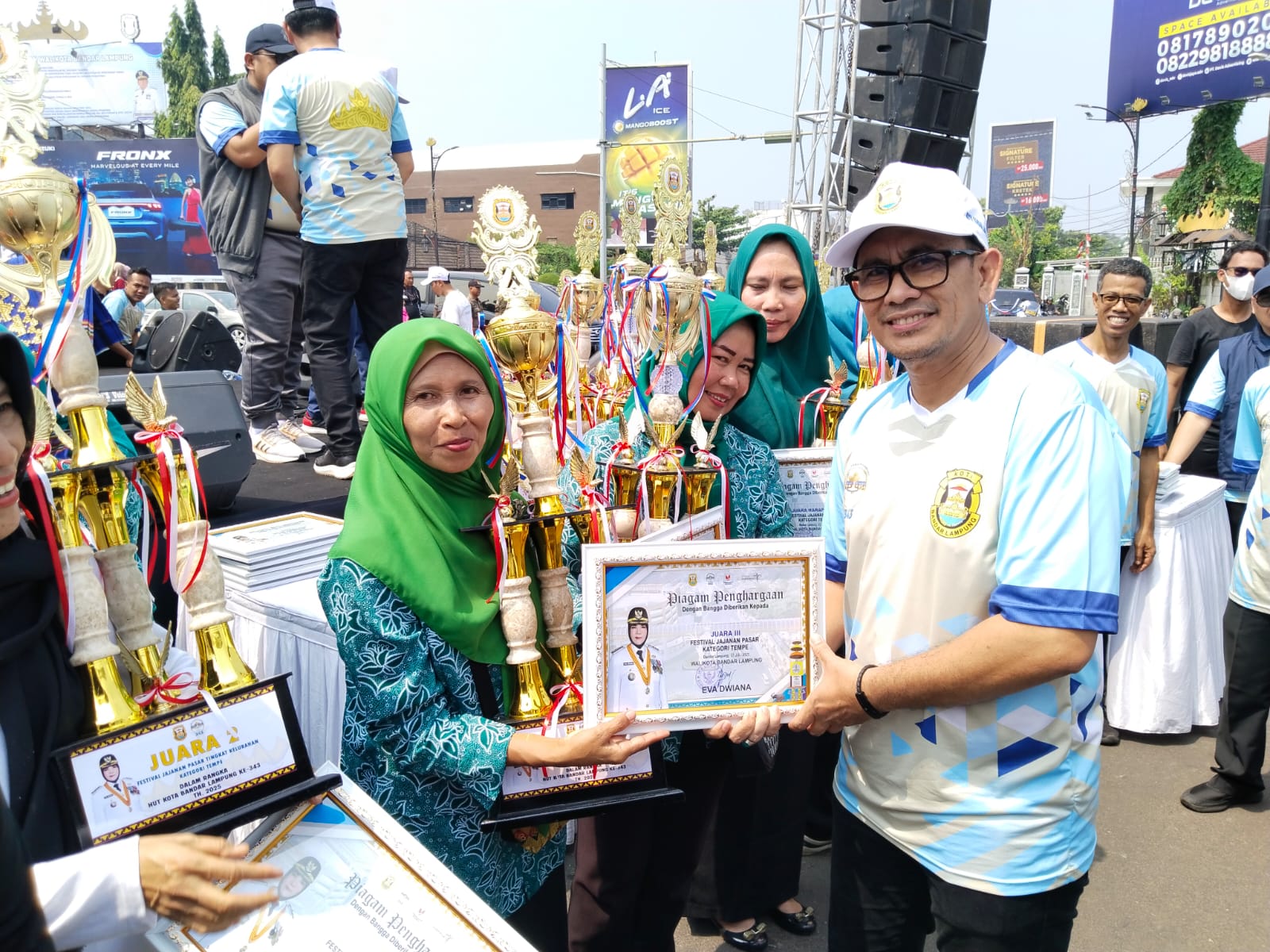 Penyerahan piagam dan medali rekor MURI di serahkan langsung Direktur operasional rekor MURI Indonesia Yusuf Ngadin kepada Wali Kota Bandarlampung Eva Dwiana didampingi Forkopimda Bandar lampung diantaranya Sekretaris daerah Iwan Gunawan , Kapolresta Bandarlampung dan Kodim 0410 Bandarlampung dan lainya .