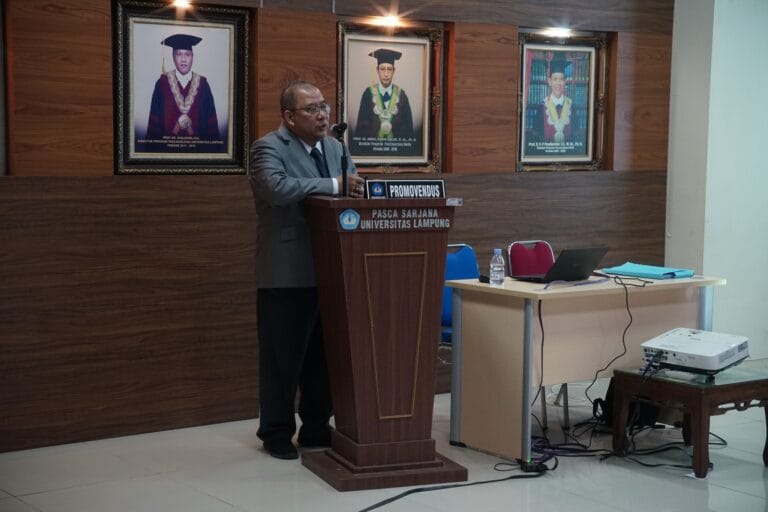 Bandarlampung ,News analis Com Program Studi Doktor Ilmu Lingkungan, Fakultas Pascasarjana Multidisiplin Universitas Lampung (Unila) kembali meluluskan seorang doktor melalui sidang terbuka promosi doktor atas nama Muhamad Komarudin. Sidang diselenggarakan di Aula Pascasarjana Unila, Senin, 4 Agustus 2025.