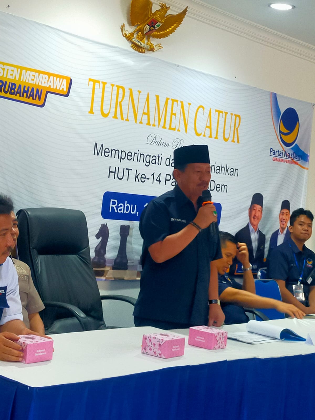 Bandar Lampung ——-News analis com . Genap 14 tahun Partai Nasdem memperingati hari jadi, Dengan menggelar oven Turnamen Catur se-provinsi Lampung dikantor sekretariat Nasdem jalan Ahmad yani di Gedung air Bandar Lampung jumat (17/10/2025).