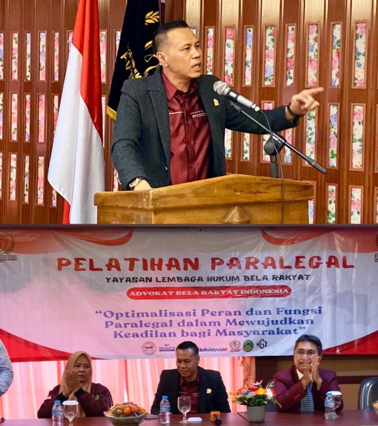 Ketua pelaksana kegiatan, Yoga Pratama RG, S.H., C.PL, dalam laporannya menyampaikan bahwa pelatihan ini tidak hanya berfokus pada pemahaman teoritis, tetapi juga pada penguatan kemampuan praktis dalam pendampingan, edukasi, dan advokasi hukum. Ia menegaskan bahwa paralegal memiliki peran strategis sebagai agen perubahan yang mampu menjembatani masyarakat dengan akses terhadap keadilan, sehingga diperlukan sumber daya manusia yang kompeten dan berintegritas.