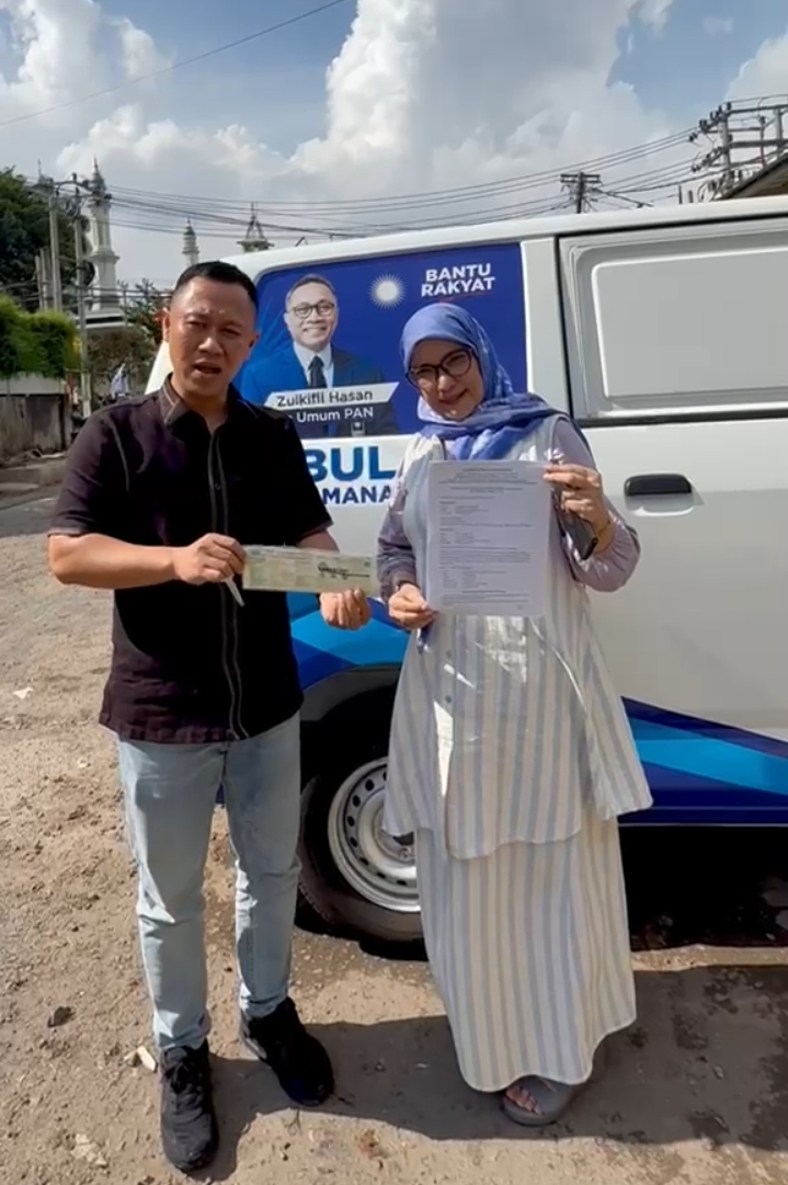 Kendaraan ambulance diterima langsung oleh Bendahara DPW PAN Provinsi Lampung Hj. Enita Agustri. Didampingi oleh Sekretaris BPOK DPW PAN Provinsi Lampung  R. Ananto Pratomo dan Pengurus DPW PAN Provinsi Lampung Saudaraku Merdian Artha Jaya.