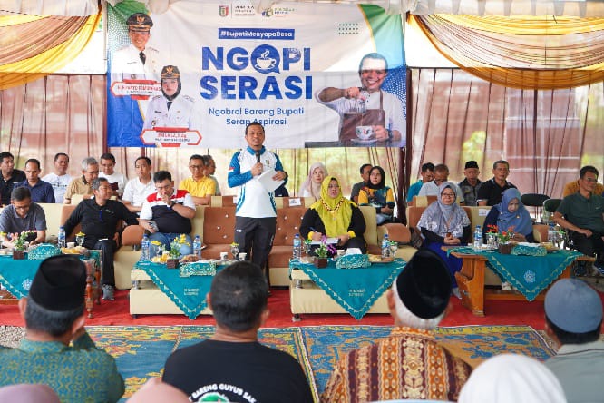 PRINGSEWU | Mewsanalis.com- Acara Ngobrol Bareng Bupati Serap Aspirasi (Ngopi Serasi) kembali digelar. Untuk edisi ke-24 kali ini digelar di halaman Masjid Nurul Iman, Tanjung Sari, Pekon Tanjung Dalam, Kecamatan Pagelaran, Kabupaten Pringsewu, Provinsi Lampung, pada Jumat (24/4/2026).